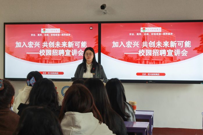 为拓宽毕业生就业渠道、提升就业质量,11月27日,yl23411集团于吉龙楼405教室举办宏兴集团校园招聘宣讲会,会计学、财务管理专业毕业生参会。