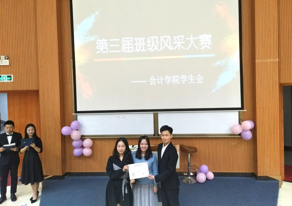 比赛共分为“班级风采展示”和“才艺表演”两个环节。随着林金狮老师的开场致辞后,大赛在掌声中拉开了序幕。在“班级风采展示”环节中,参赛班级集思广益,按照活动主题内容精心准备了ppt课件,向在场的师生汇报了入校以来的学习、生活,以及班级开展的丰富多彩的文体活动。其中各班的班徽独具创意,班级口号简洁有力,班级合照充满青春,展现出了会院学子积极健康、昂扬进取的精神风貌。在“才艺表演”环节中,各参赛班级拿出了“看家本领”,形式多样的表演节目、别具一格的才艺,彰显了同学们的青春活力,赢得了全场的阵阵喝彩声。