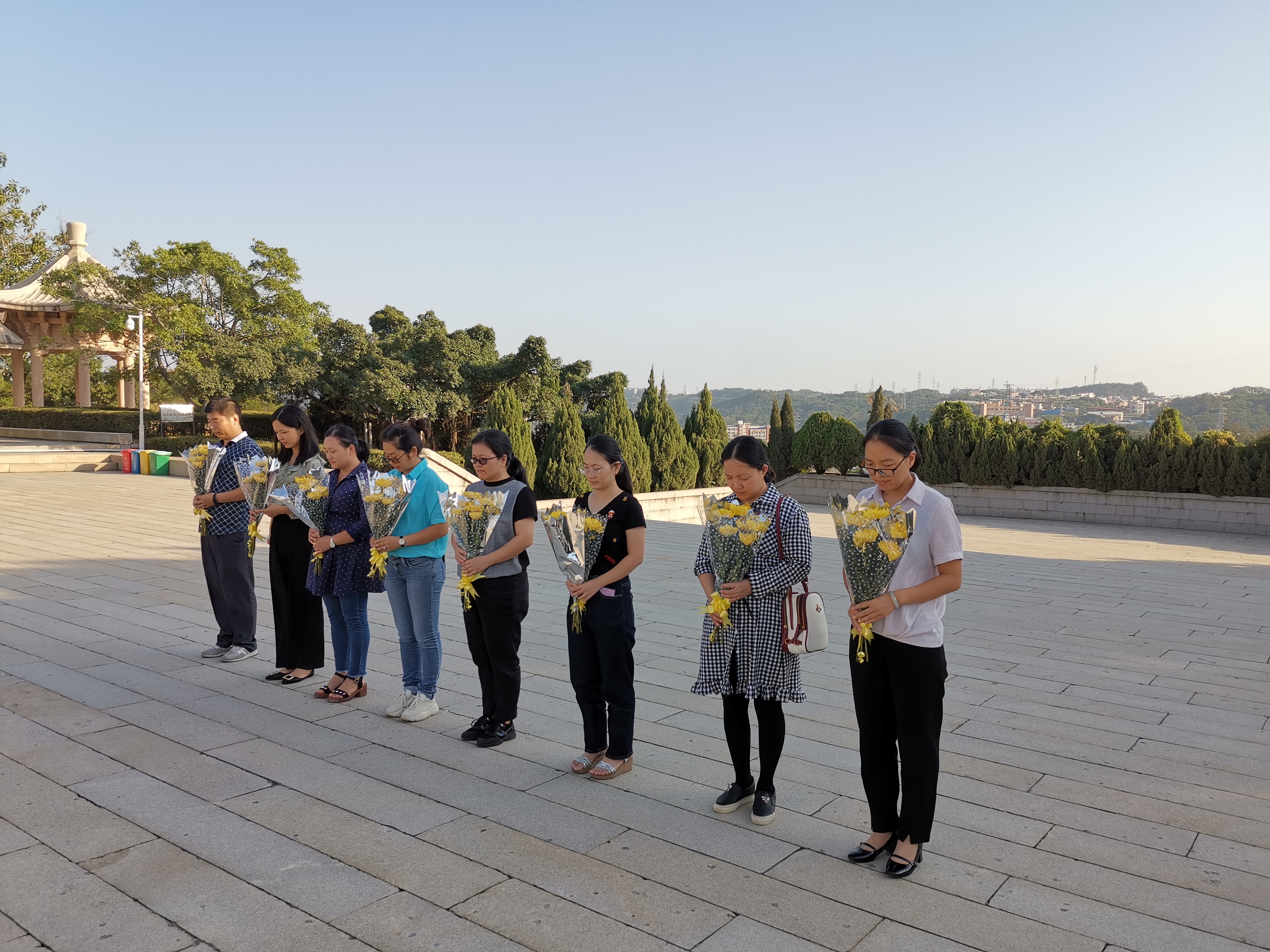 yl23411集团的每一位教师党员手捧一束菊花,在革命烈士永垂不朽纪念碑前默哀,并依次向革命烈士敬献鲜花,随后缓缓绕行纪念碑一周,以此表达对先烈们的崇高敬意,追忆先烈的丰功伟绩,深刻感受革命先烈对党无限忠诚、对人民无限深情、对革命事业无私奉献的崇高精神。
