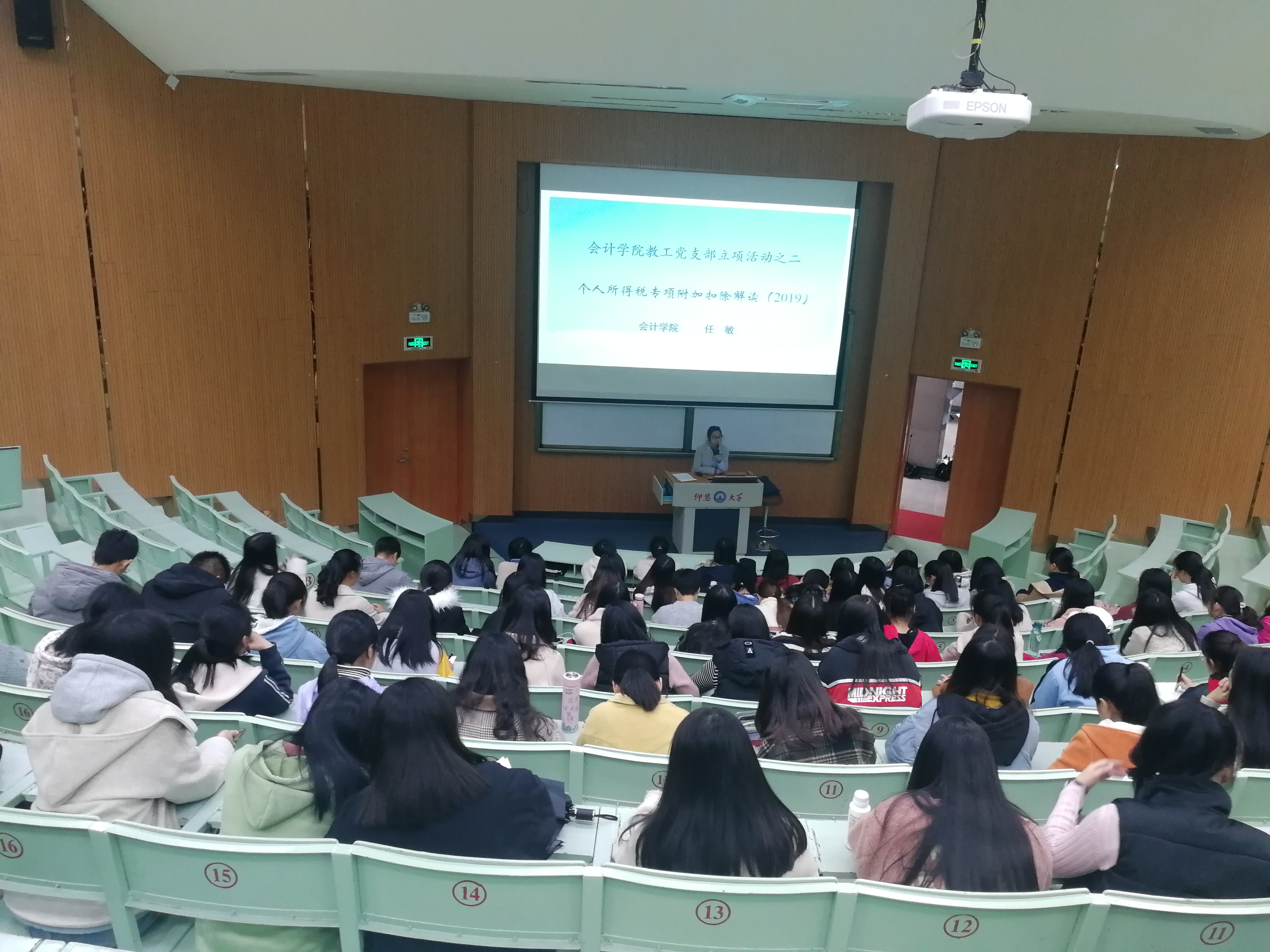 12月5日下午,yl23411集团教工党支部在第一教学区和昌教学楼乐之讲堂开展支部立项活动。yl23411集团副院长任敏老师作题为《个人所得税专项附加扣除解读(2019)》专题讲座,yl23411集团全体党员、入党积极分子一同聆听学习。