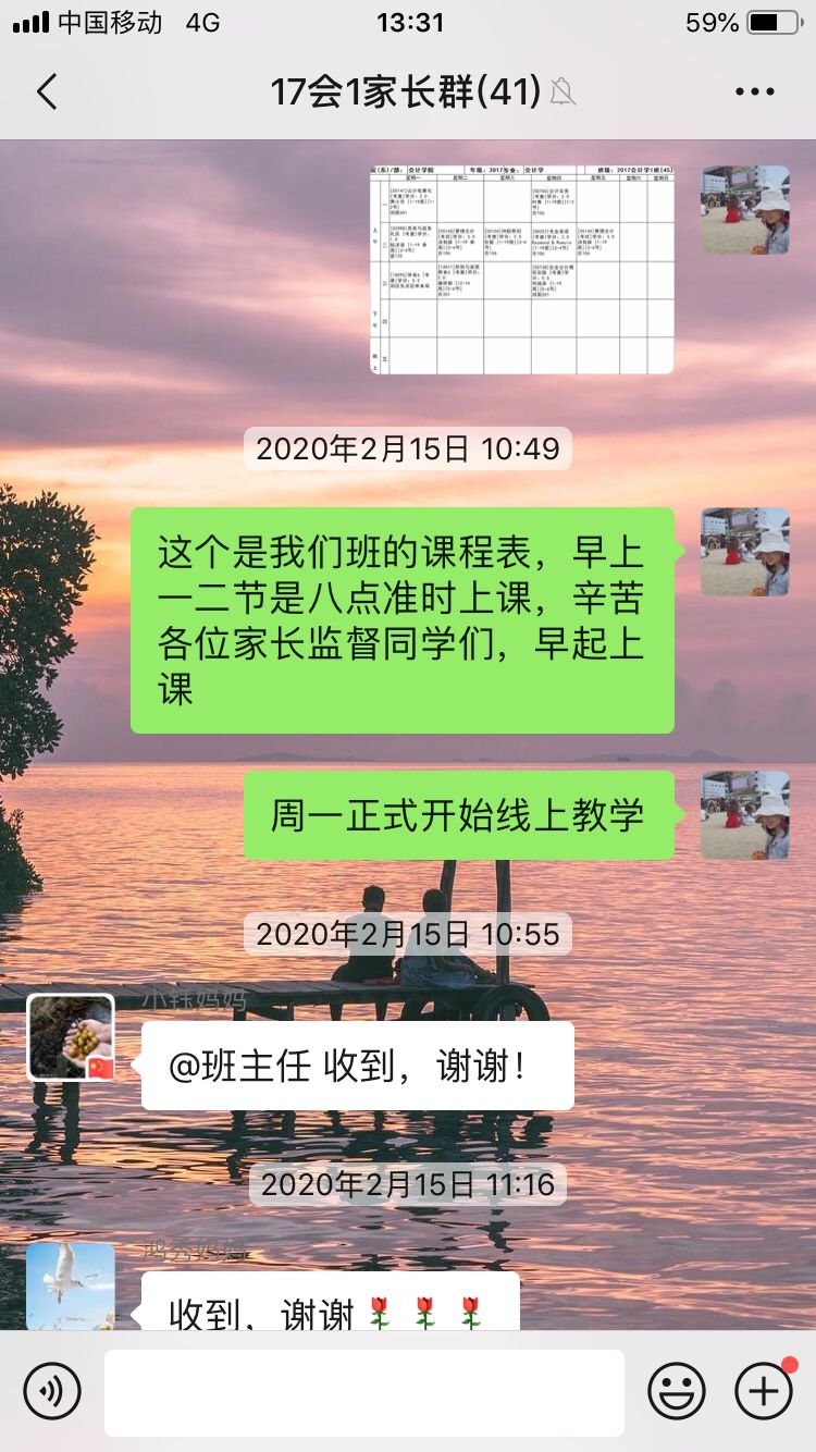 学院充分落实疫情期间的“家校共建”活动,在线上课程开课之前,便主动向家长提供学生课程表,提醒家长做好学生学习监督。此后,学院班主任辅导员也主动连线家长,积极收集家长们的教学意见、建议,深入了解学生在家的网课学习状态,对学生学业困难情况也及时向家长反馈,通过一次次特殊的家访,为家长和学生们送去学院的温暖与关怀。