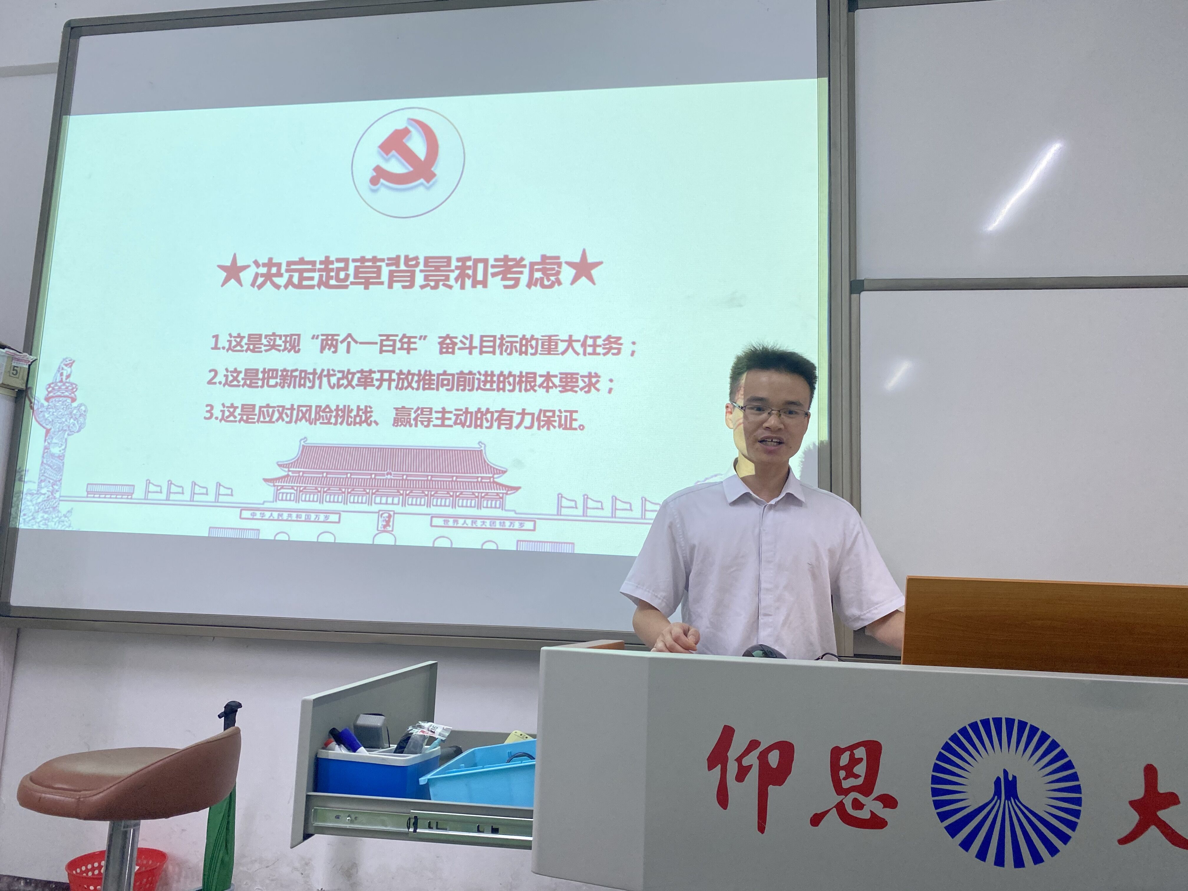 9月9日下午,yl23411集团党总支理论学习中心组于吉龙教学楼105教室召开2020年度第六次专题学习活动,交流研讨《深入学习领会习近平总书记关于坚持和完善中国特色社会主义制度、推进国家治理体系和治理能力现代化的重要论述》的自学体会,yl23411集团党总支理论学习中心组全体成员参加研讨会,会议由党总支组织委员林金狮主持。