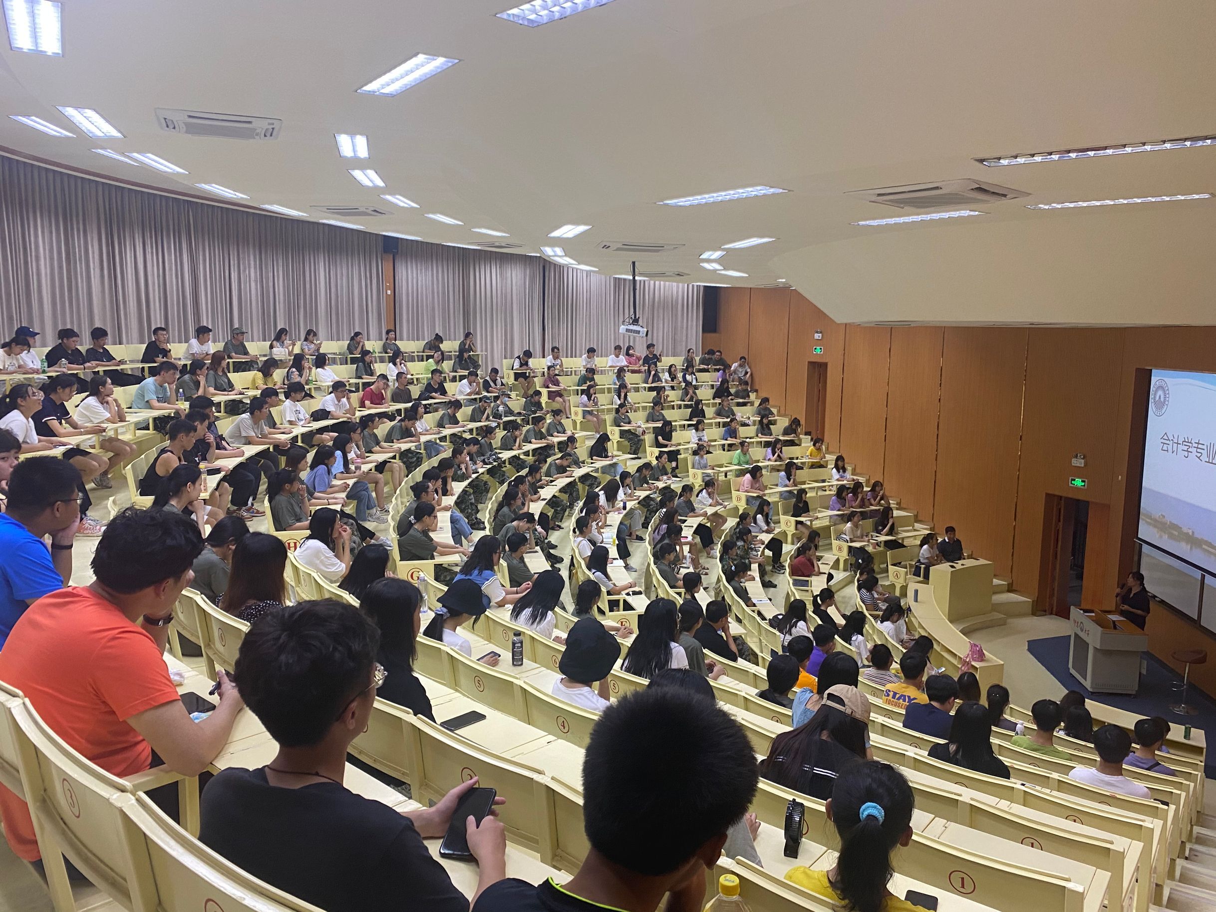 为了让新生全面的认识yl23411永利集团,快速地适应大学生活,顺利完成角色的转换,并引导其正确的认识所学专业,早日树立学习目标与职业生涯规划方向。9月17日晚,yl23411集团在第一教学区和昌教学楼致知讲堂为2020级新生开展会计学专业入学教育主题讲座。出席此次活动的有yl23411集团院长何杨英、副院长任敏、会计学系主任蒋鹏飞、2020级新生辅导员杜婷丽以及会计学系全体教师。