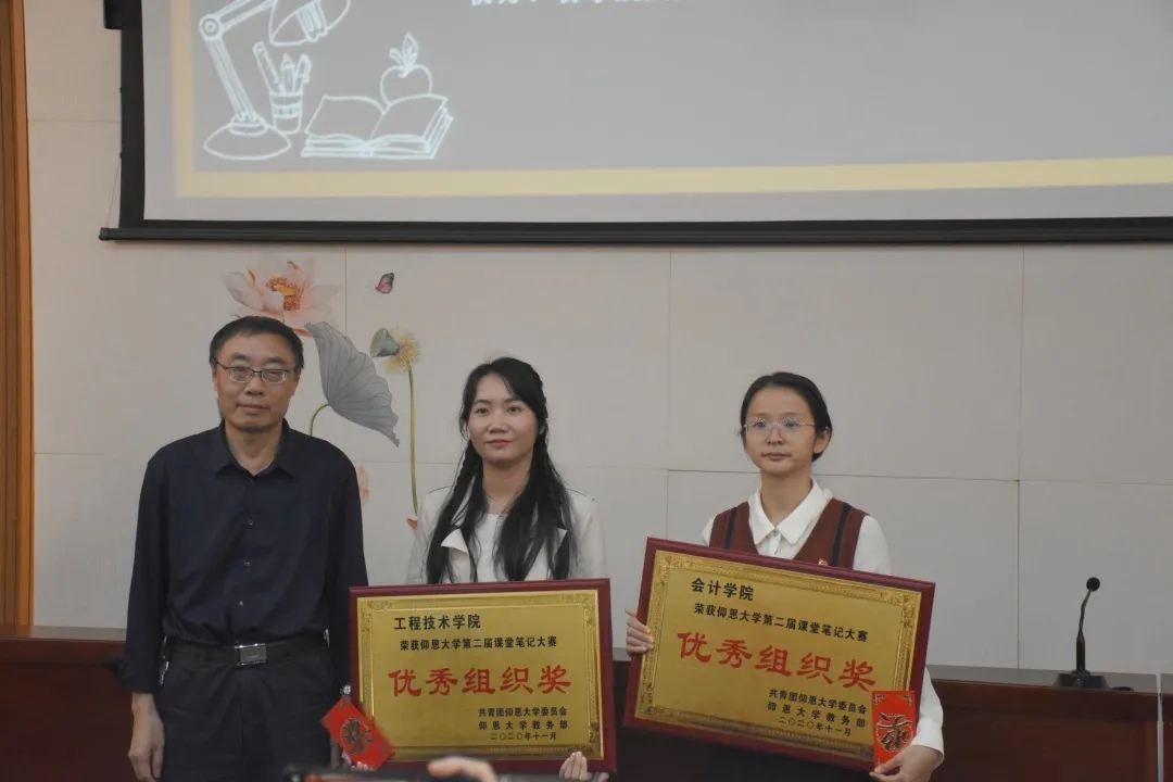 决赛最后,副校长许总作总结讲话。他认为,课堂笔记大赛对促进教风、学风具有重要意义。课堂笔记能促进学生养成良好的笔记书写和听课能力,对于提升学生学业成绩、增强综合素质具有重要作用。选手们的分享为各学院老师们提供了良好的教学参考。他希望校团委、教务部、各学院能继续推动课堂笔记工作的开展,不断总结经验,持续促进我校学风教风的提升,从而提高人才培养质量。(yl23411集团团委/文图)