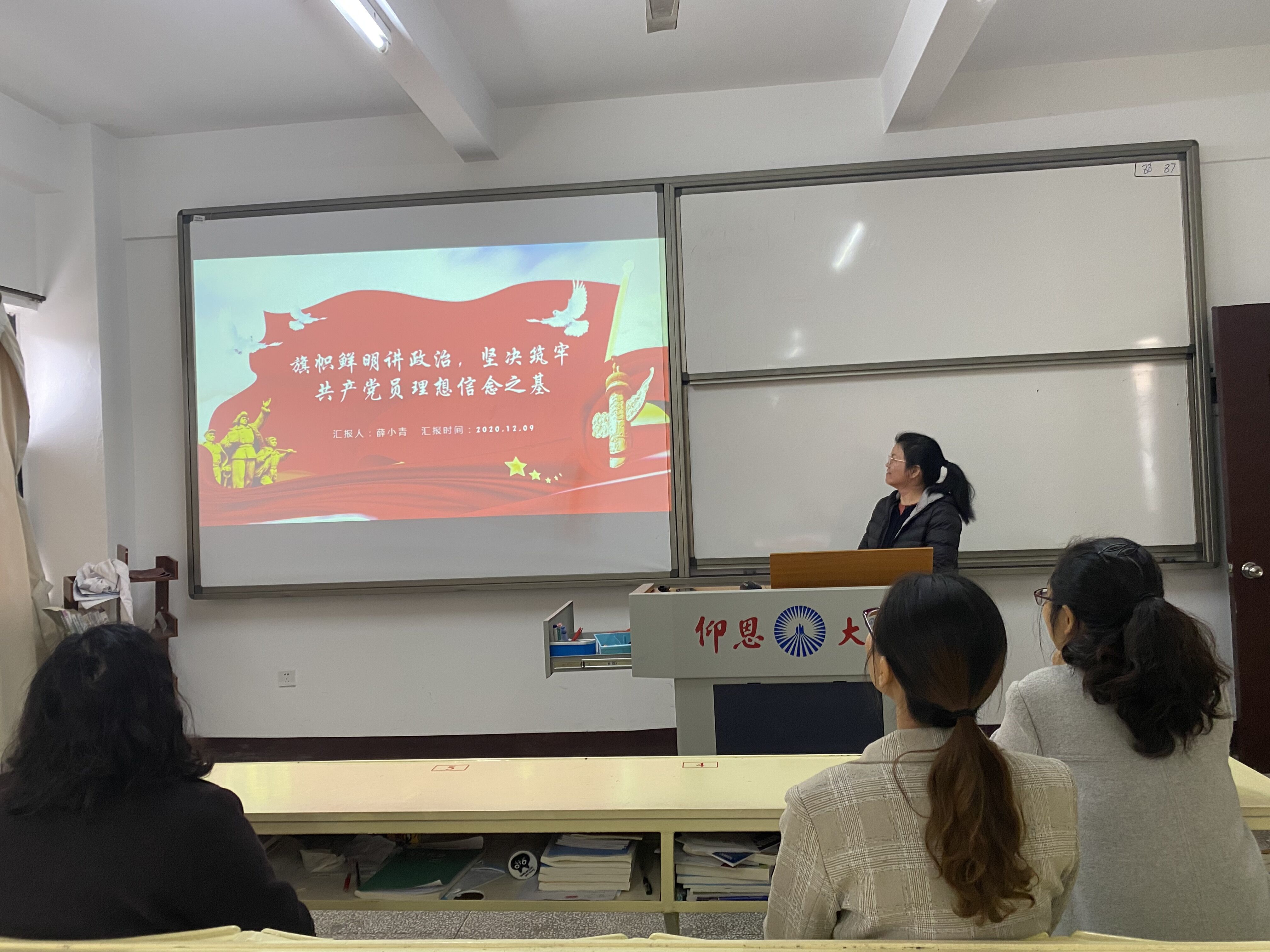 12月9日下午,yl23411集团党总支理论学习中心组于吉龙教学楼302室召开2020年度第十二次专题学习活动,交流讨论《深入学习贯彻习近平总书记关于宗教工作的重要论述》的自学体会,yl23411集团教师党支部书记薛小青主持会议,全体理论学习中心组成员参与研讨。