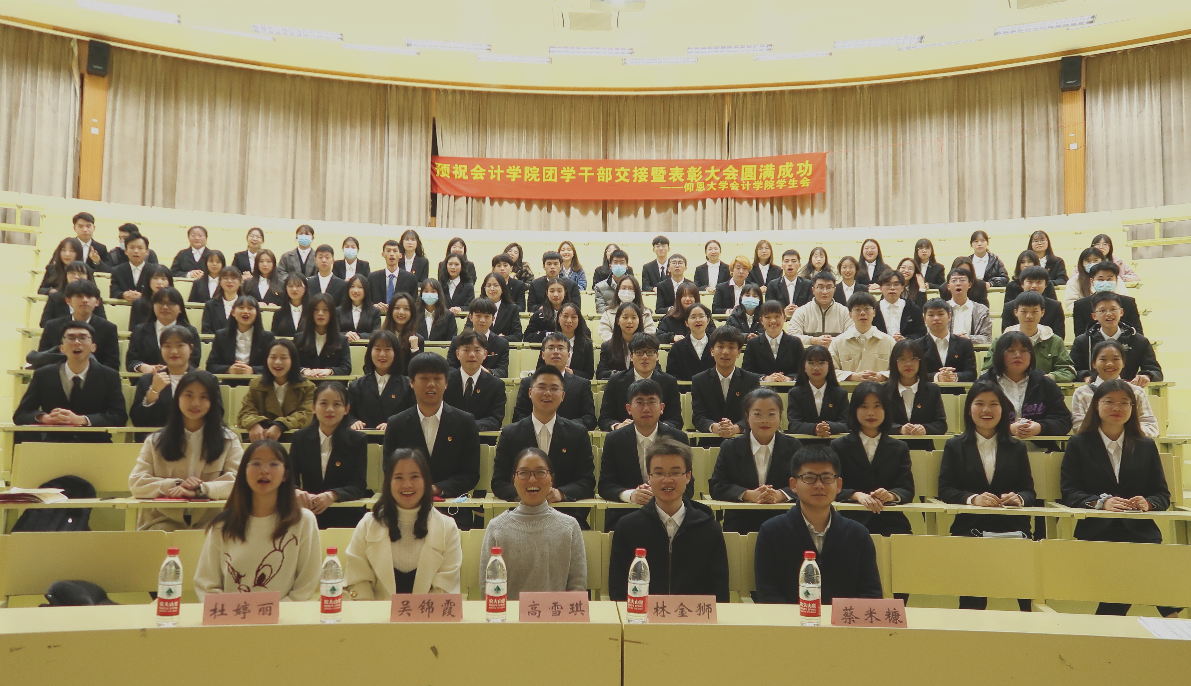12月16日下午4:30,yl23411集团团学干部交接表彰大会于第一教学区和昌楼致知讲堂顺利召开。出席本次大会的有yl23411集团党总支书记兼副院长高雪琪、党总支副书记吴锦霞、党总支组织委员林金狮、团委书记杜婷丽、学生会指导老师蔡米糠、团学干部以及20级全体新生。