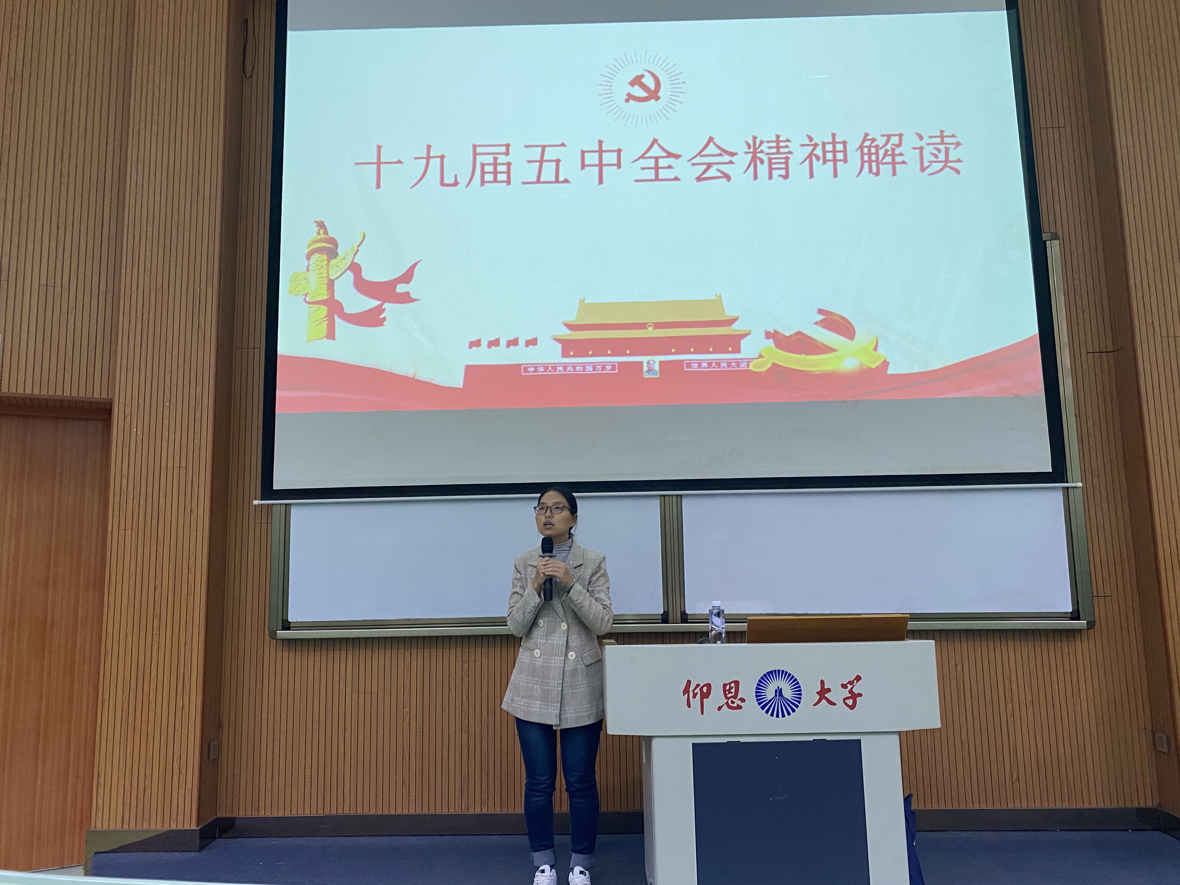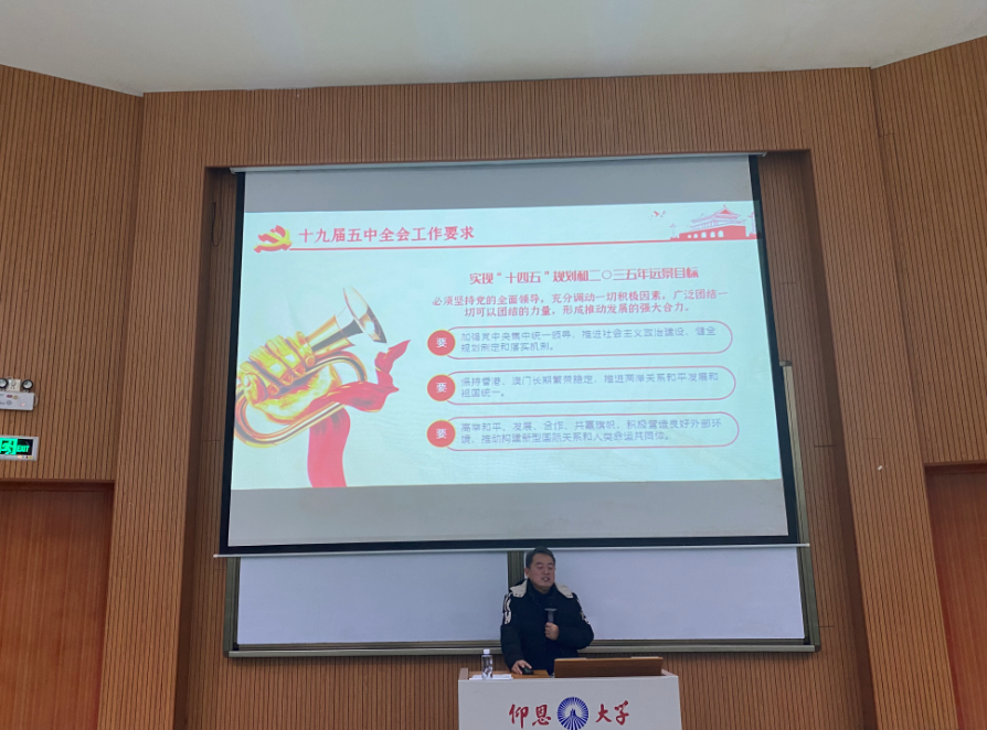 为深入学习贯彻党的十九届五中全会精神,12月21日下午,yl23411集团邀请了马克思主义学院直属党支部书记兼常务副院长李克钦作学习贯彻党的十九届五中全会精神专题宣讲报告。报告会由yl23411集团党总支书记高雪琪主持,全院教师、党员和积极分子到场聆听。