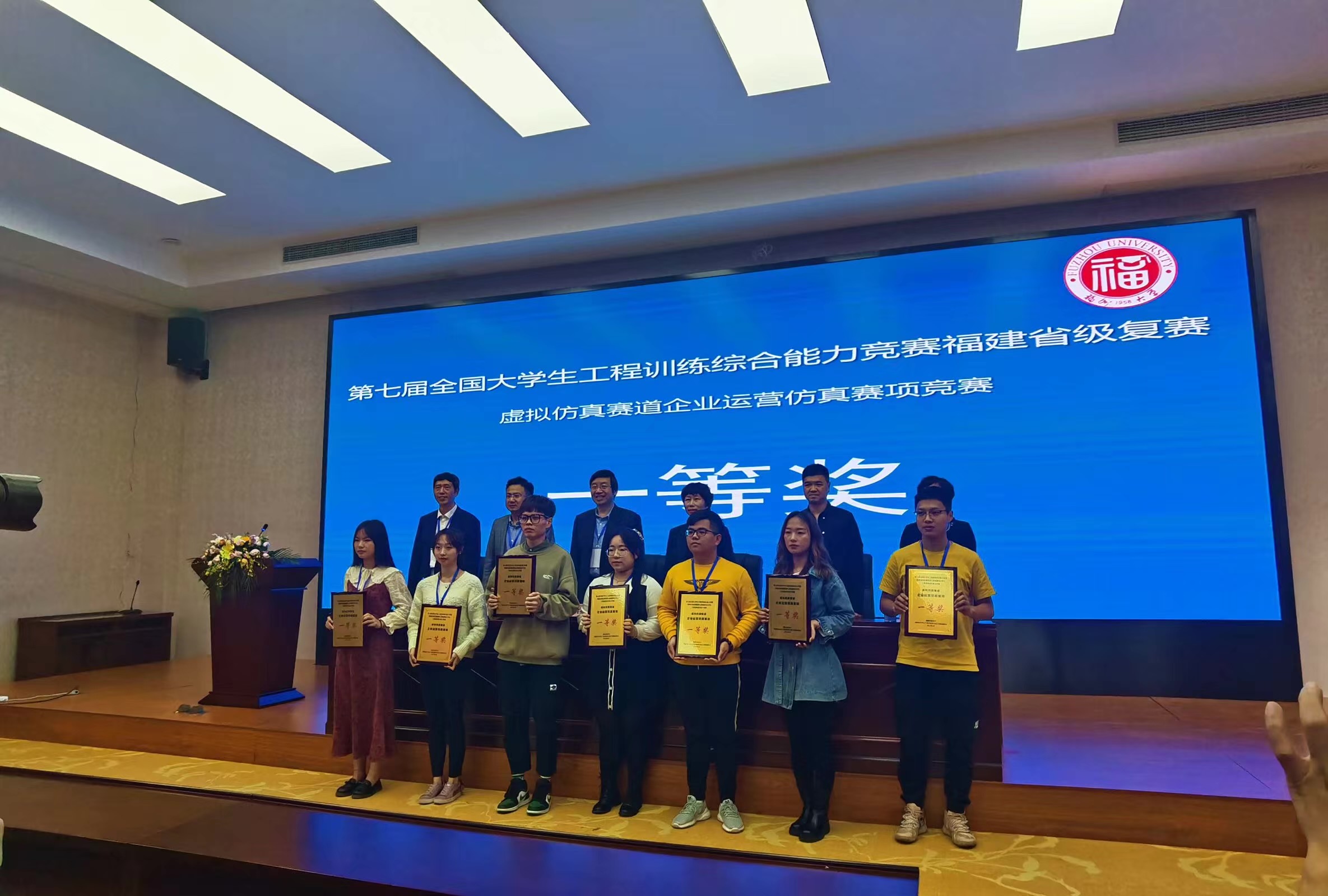 4月17日至18日,第七届全国大学生工程训练综合能力竞赛福建省级复赛暨第九届福建省大学生工程训练综合能力竞赛虚拟仿真赛道企业运营仿真赛项竞赛在福州大学举办。我院学生郑榕坪、黄靖琳、沈婷姗、陈崟煊荣获省级一等奖;高玲萍、阙心茹、赵蕴欣、陈元虹荣获省级二等奖。