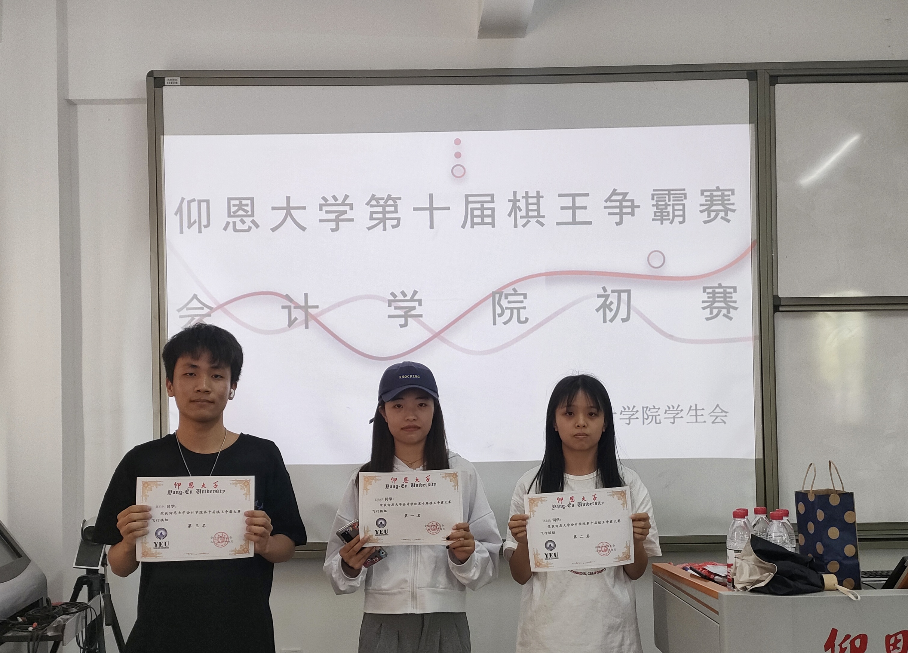 经过激烈的角逐之后,周福龙、张雅琦和童宇杉分别获得象棋组的第一、二、三名;章宏宇夺得围棋组桂冠;苏智荥夺得军棋组的桂冠;邓巧莹、郑诗怡和余奕庄分别获得五子棋组的第一、二、三名;戴雨柔、卢文灵、陈睿媛分别获得跳棋组的第一、二、三名;郑舒尹、张庆娟、林贤冰分别获得飞行棋组的第一、二、三名。以上获得各组第一、二名的同学将代表yl23411集团参加校赛 ,预祝同学们能够在校赛中取得佳绩。
