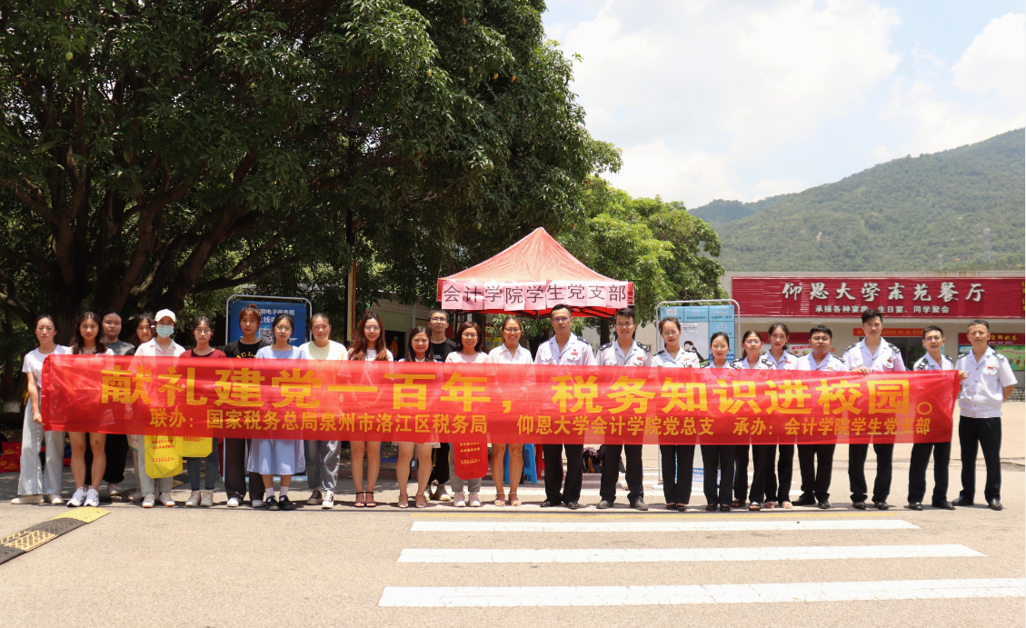 为庆祝中国共产党建党100周年,深入开展党史学习教育,进一步做好税务知识的宣传和普及,6月16日,yl23411集团党总支携手泉州市洛江区税务局开展了“献礼建党一百年,税务知识进校园”税务知识宣传活动,分别于yl23411永利集团第一教学区和第三教学区食堂旁设点进行宣讲和宣传。
