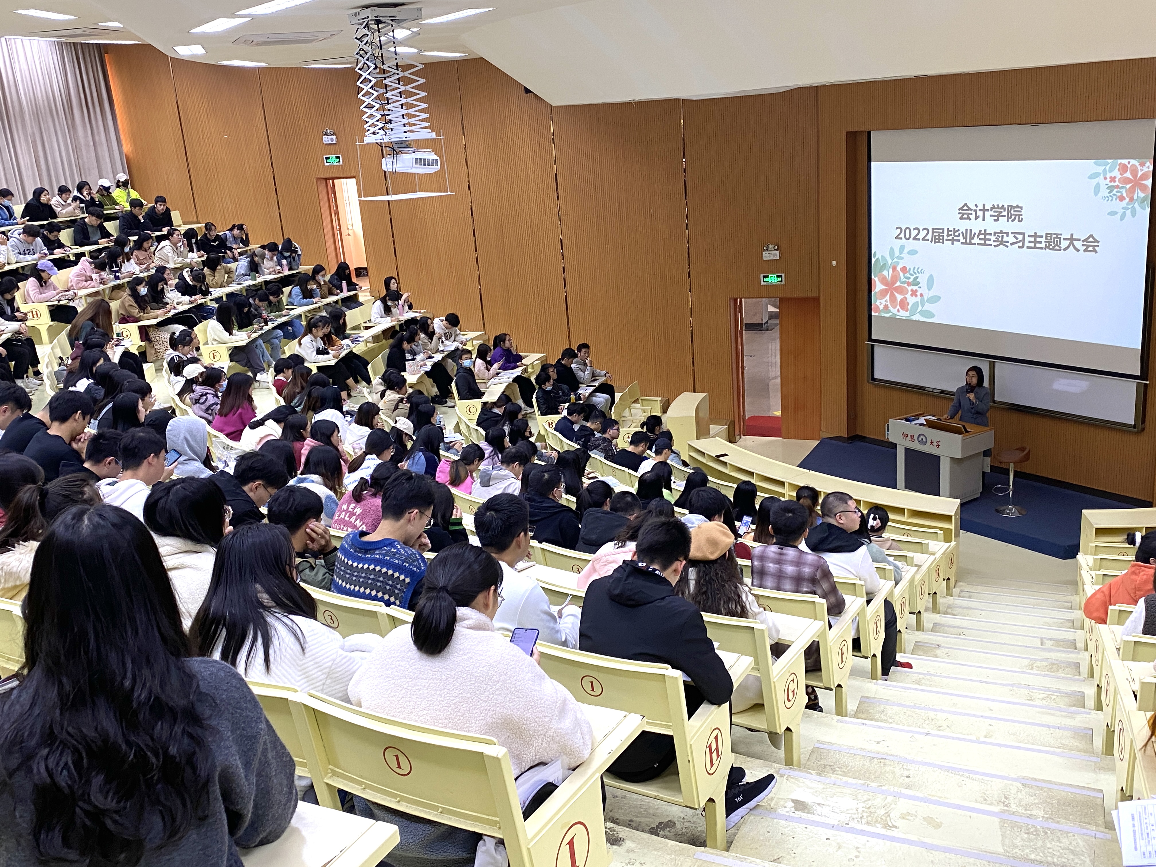 12月29日下午4:00,yl23411集团于第一教学区和昌教学楼致知讲堂召开了2022届毕业生毕业实习动员大会。本次动员大会由yl23411集团副院长任敏老师主讲。yl23411集团2022届毕业生实习指导老师以及yl23411集团全体毕业生共三百余人参加了本次会议。