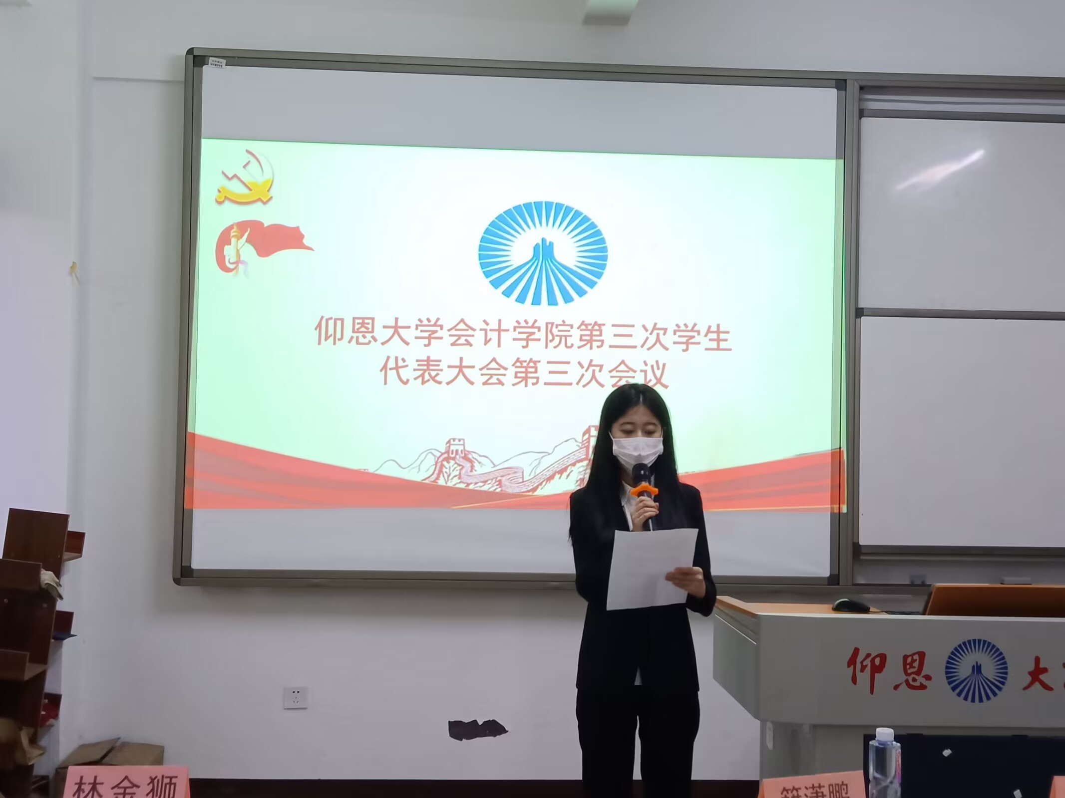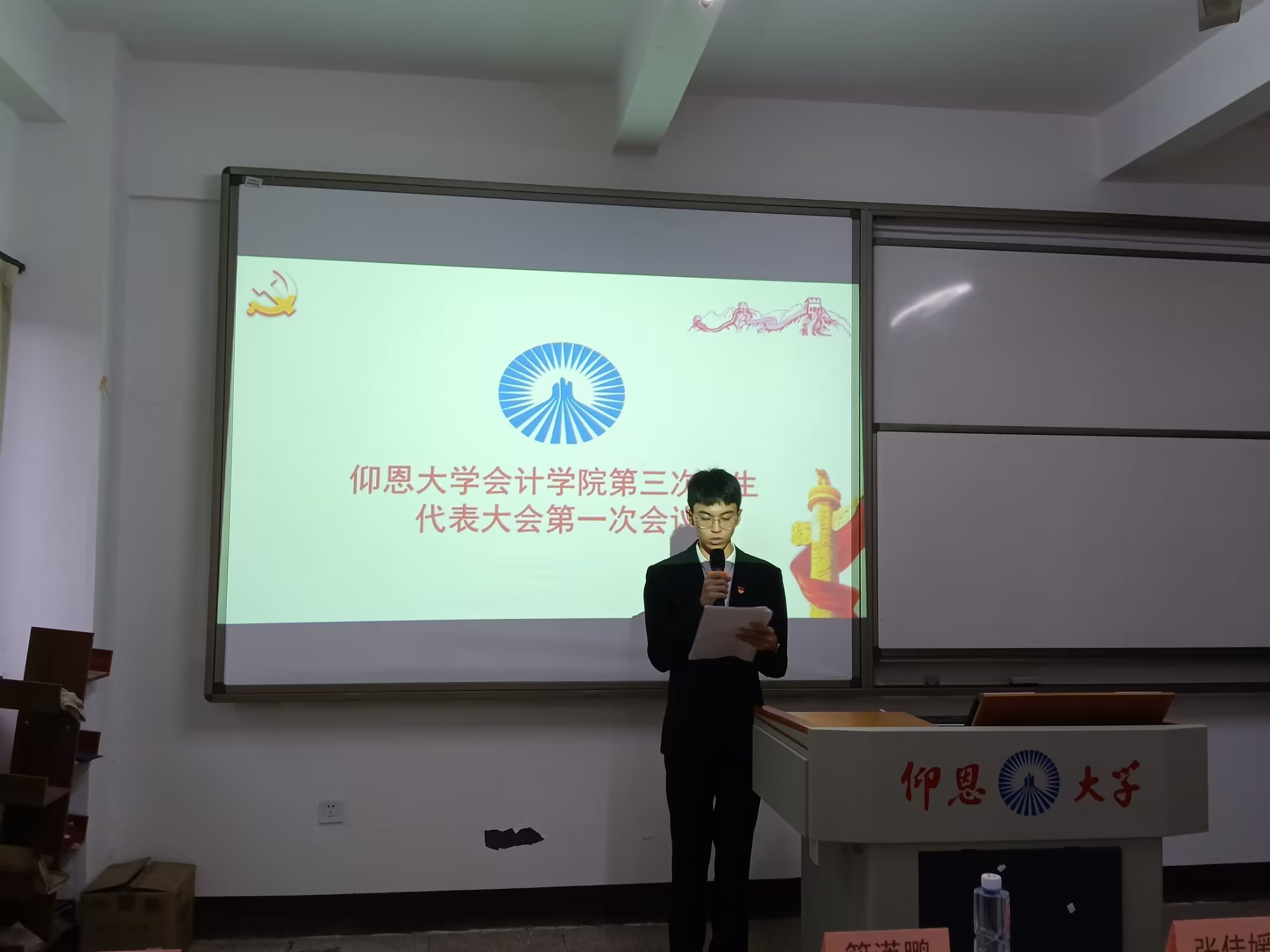 10月31日下午,yl23411集团第三次学生代表大会(下面简称“学代会”)在yl23411永利集团第一教学区吉隆楼301和302教室召开。参与此次大会的有yl23411集团党总支组织委员林金狮、团委书记卢传欢、财务管理系学生支部书记籍潇鹏、会计学系学生支部书记林晓玲、学生会指导老师张佳媛以及学院48名学生代表,会议由学生会执行主席杨思琦主持。