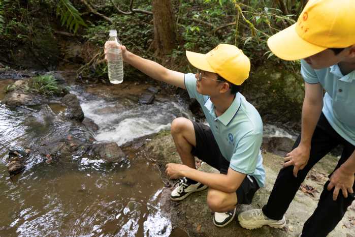 队员观察河流水质