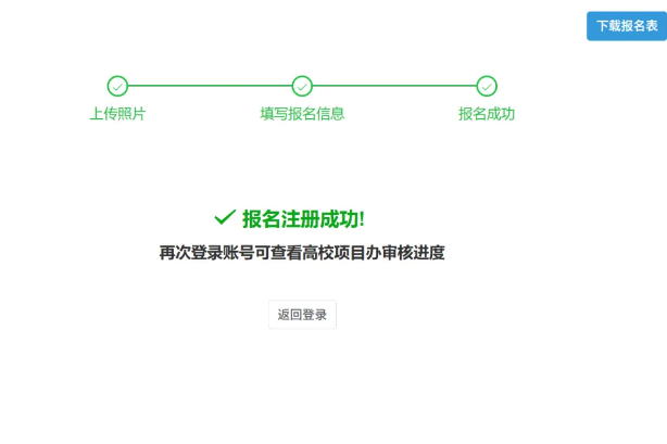 显示“报名注册成功”后,点击右上角的“下载报名表”,进行下载并打印。